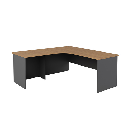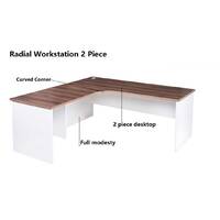 2 Piece Radial Workstation Premier Office Writing Table Furniture Computer Desk 1800 x 1800mm LH Return Regal Walnut and Charcoal
