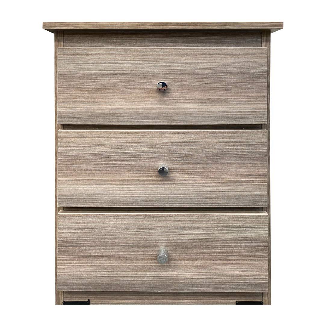 Specifications: Size 420mm (w) x 400mm (d) x 600mm (H) MELAMINE TIMBER CHEST OF DRAWERS This melamine timber chest of drawers is in a ceramic finish presenting a simple French provincial style design.