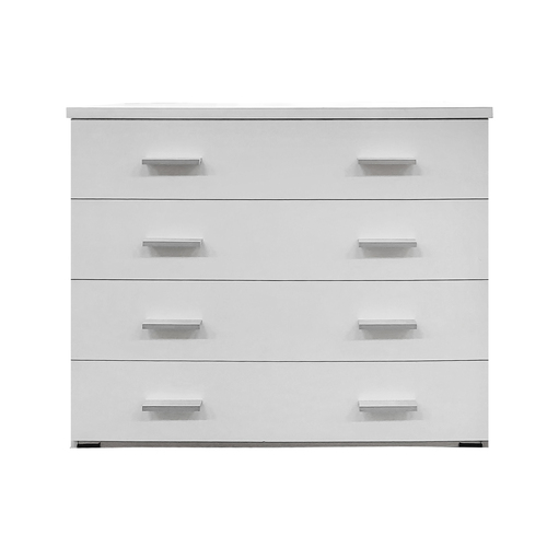 This Hugo melamine timber chest of drawers is in a White finish presenting a simple French provincial style design.