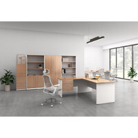 This range of shelving are available in a modern co-ordinate casnan and white melamine finish. It has clean lines and a full range of co-ordinate items including filing cabinets hutches returns and storage cabinets.