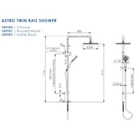 Astro II Package Twin Rail Shower + Shower Mixer Gun Metal Greens Tapware 18790GM + LF2524806GM