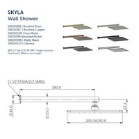 Shower Features 280mm x 280mm square overhead wall shower, 380mm wall arm