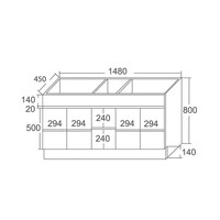 Dimensions: Cabinet: 1480 x 450 x 800mm