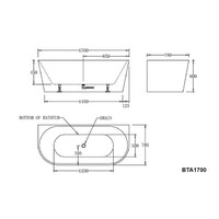 Best BM Bath Back to Wall Tub Bathroom Bathtub 1700mm White Atlanta BTA1700