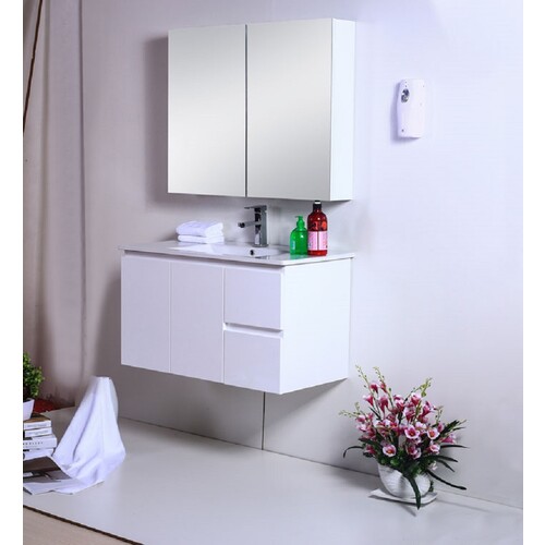 Best BM Bathroom Vanity Cabinet 900mm 2 Doors 2 Drawers Gloss White Wall Hung BVW-900