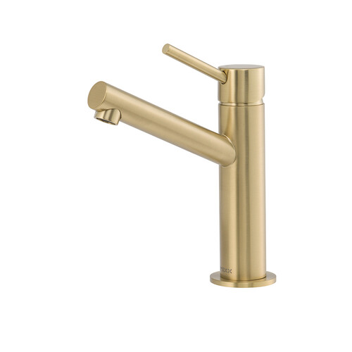 Brasshards Mixx Anise Eco Basin Mixer Upswept Spout Brushed Gold Lead Free 11SL997ALF