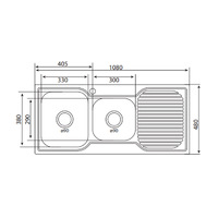 Castano Sink Kitchen Right hand Double 1 & 3-4 Bowl 1080mm Turin TUSS1080RH