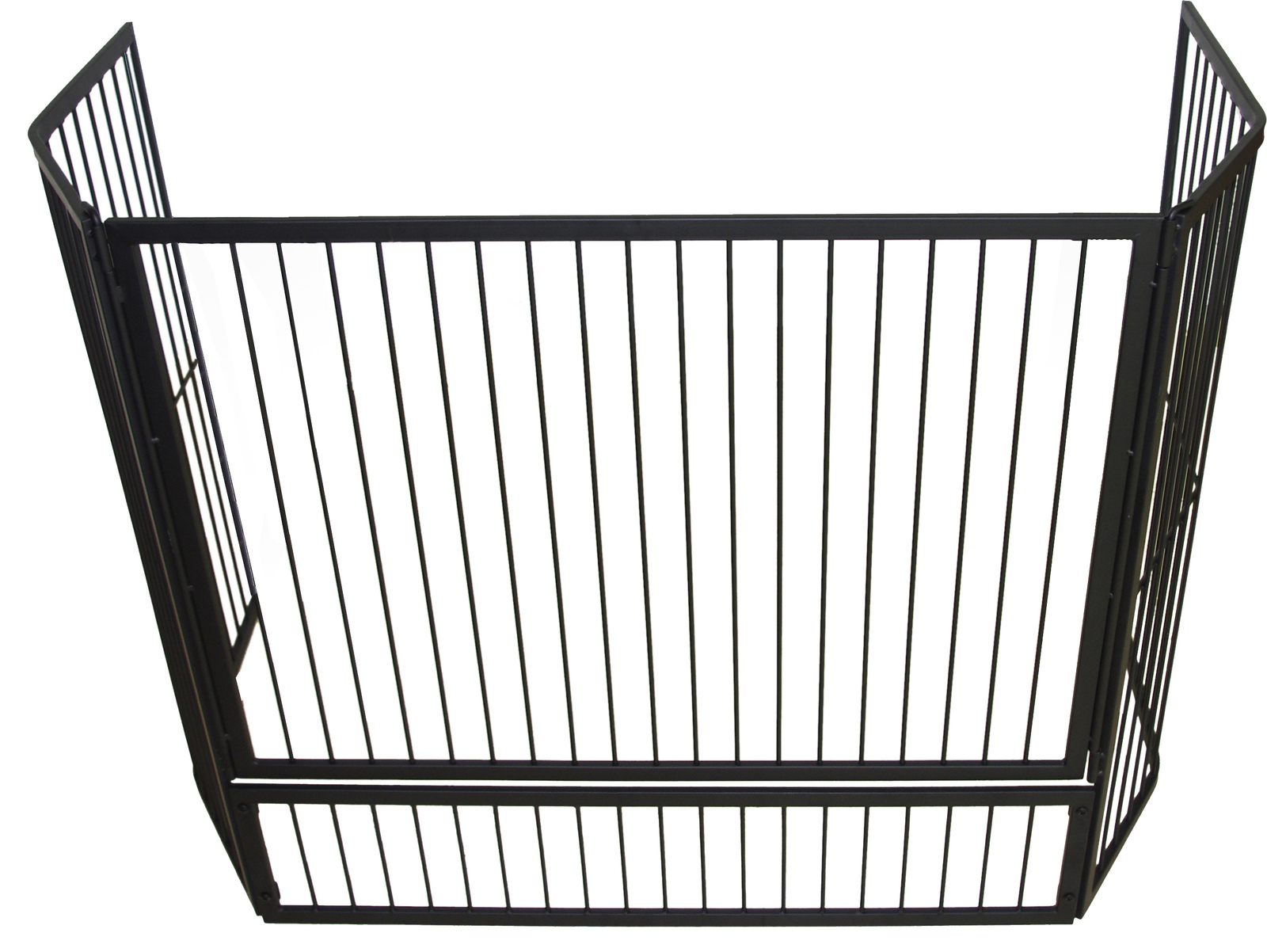 Child Guard Safety Fire Screen with Gate Heavy Duty Steel Frame Fireplace For Inbuilt Heater Black OFGTIB-2