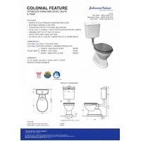 Colonial Toilet Suite Period Style Vitreous China White J2050.J2401