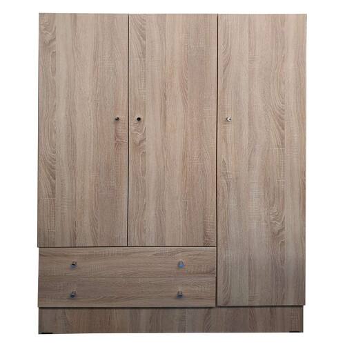 Combination Wardrobe Clothes Rack Storage Unit 3 Door 2 Drawer Cabinet Cupboard 120cm x 180cm Natural Oak WR 4