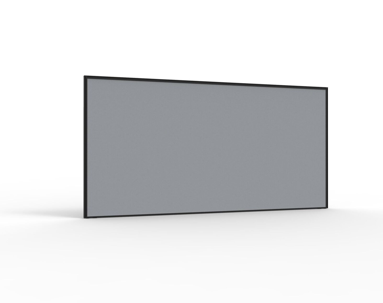 The SHUSH30 screen range features a 30mm slimline screen with a square profile, powder coat frame and a full fabric pinnable surface with adjustable leveling feet.