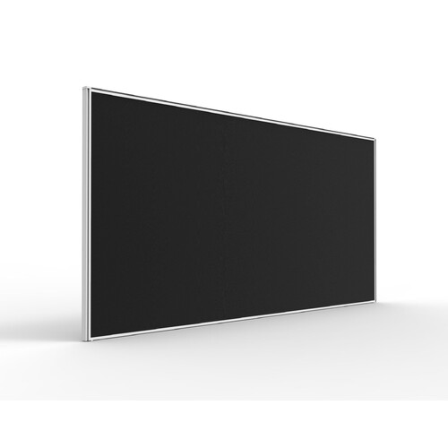 The SHUSH30 screen range features a 30mm slimline screen with a square profile, powder coat frame and a full fabric pinnable surface with adjustable leveling feet.