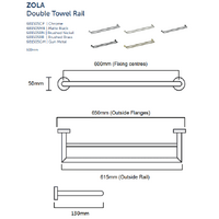 Double Towel Rail Holder 600mm Matte Black Greens Tapware Zola 681505MB