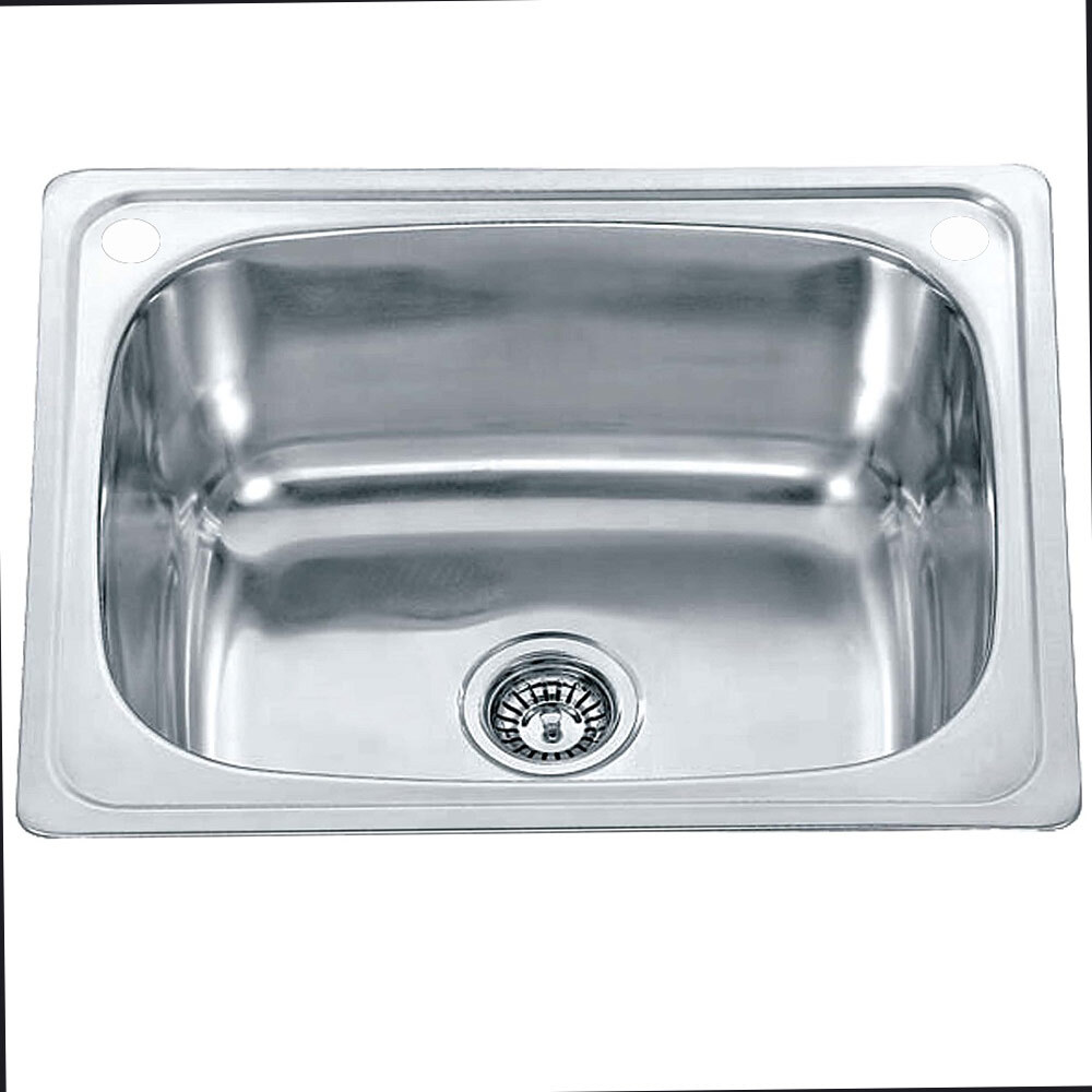 ECT Global Laundry Sink Trough 35 Litre Stainless Steel Tub 2 Hole and By pass kit Lavassa SS A23