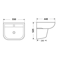 550*440*525mm, 180mm between 2 fixing holes(basin), 235mm between 2 fixing holes( shroud).