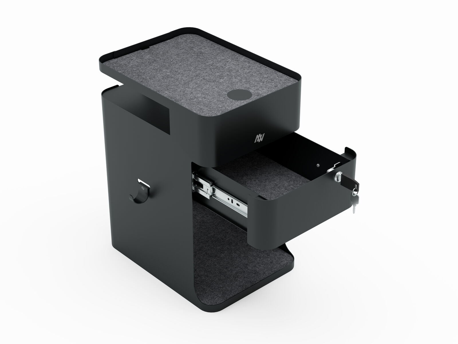 Everything you need is within arm’s reach, and when you step away, everything is tucked away securely in the lockable drawer.