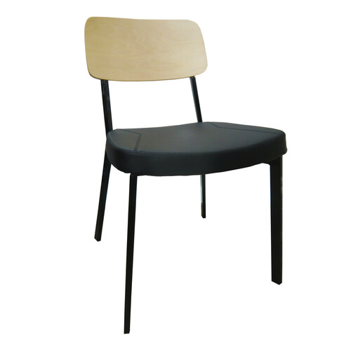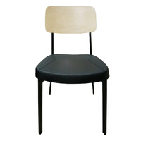 Restaurant Dining Room Chair Metal Stackable Cafe Chairs Black Padded Vinyl Seat Oak Timber Back Estelle