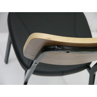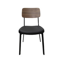 Restaurant Dining Room Chair Metal Stackable Cafe Chairs Black Padded Vinyl Seat Walnut Timber Back Estelle