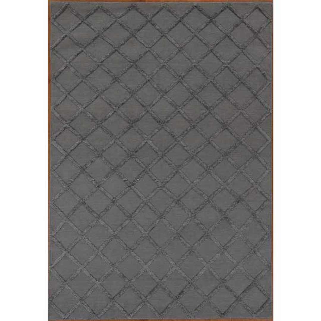 Estelle Lattice Grey Modern Textured Floor Rug Wool Cotton & Silk 155cm x 225cm