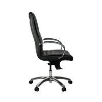 Medium back quality leather chair with aluminium base and padded aluminium armrests, lockable tilting mechanism. 3 year warranty