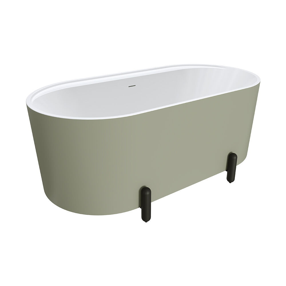 Fienza Aluca Freestanding Bath 1500mm Matte Black Legs w Overflow Matte Olive FR88-1500G-B-OF