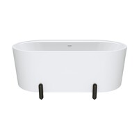 Fienza Aluca Freestanding Bath 1500mm Matte Black Legs w Overflow Matte White FR88-1500W-B-OF