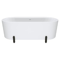 Fienza Aluca Freestanding Bath 1700mm Matte Black Legs w Overflow Matte White FR88-1700W-B-OF