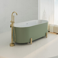 Fienza Aluca Freestanding Bath 1700mm Urban Brass Legs w Overflow Matte Olive FR88-1700G-UB-OF