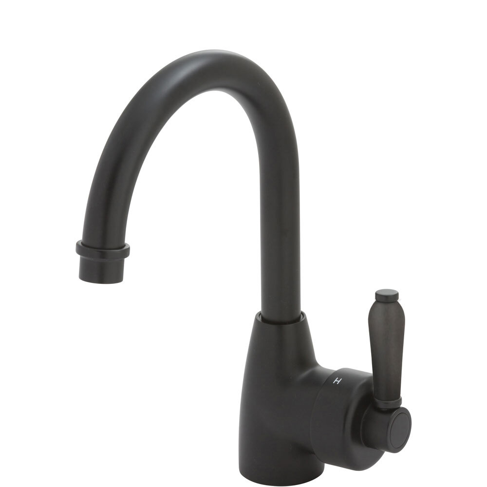 Fienza Basin Mixer Bathroom Gooseneck Tap Matte Black Eleanor 202104BL