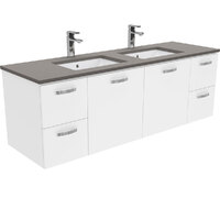 Fienza Bathroom Vanity 1500 Cabinet Wall Hung Cupboard Fingerpull Gloss White 150F