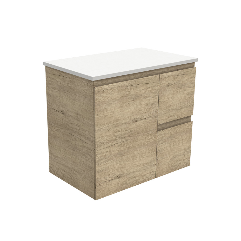 Fienza Bathroom Vanity 750 Cabinet Wall Hung Cupboard Two Drawers Edge Scandi Oak 75SR