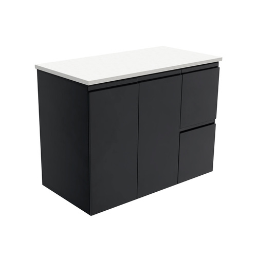 Fienza Bathroom Vanity 900 Wall Hung Cabinet Fingerpull Satin Black 90ZBR