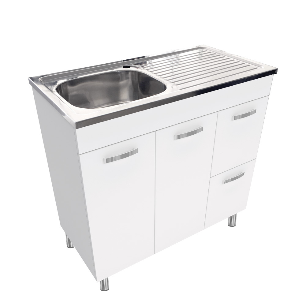 Kitchen Sink & Cabinet Cupboard Storage Unit On Legs White Fienza Citi UniCab 900mm CIT90NLWR