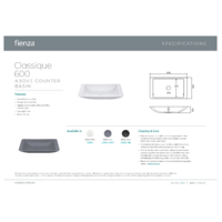 Fienza Classique 600 Cast Stone Solid Surface Above Counter Basin Matte Black No Tap Hole 600mm x 345mm CSB03-MB