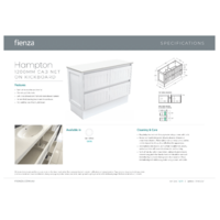 Highest quality UV resistant satin white finish Satin white interior 850mm tall (not including basin-top) Discrete pull channels for easy opening without handles Soft close drawers Full extension drawer runners Solid 16mm backing board & drawer bases FSC approved, eco-friendly E0 quality board 5 Year Warranty on cabinet Part of Fienza’s universal vanities range Width: 1200mm x Depth: 460mm x Total Height: 870mm