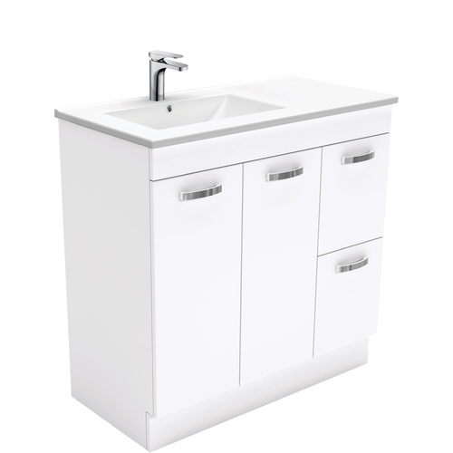 Fienza Dolce Unicab 900 Offset Vanity on Kickboard Left Basin White TCL90LNKW