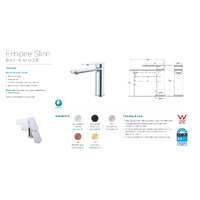 Fienza Empire Slim Cold Start Bathroom Basin Mixer Tap Brushed Nickel 234103BN-LF