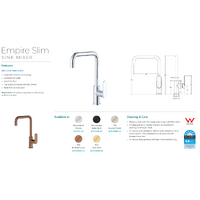 Fienza Empire Slim Square Kitchen Sink Mixer Brushed Copper 234105CO-LF