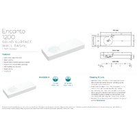 Fienza Encanto 1200 Solid Surface Wall Hung Basin Left Hand Bowl No Tap Hole Matte White CSB11-120L-0