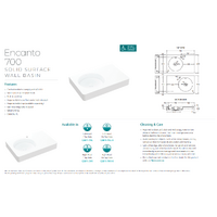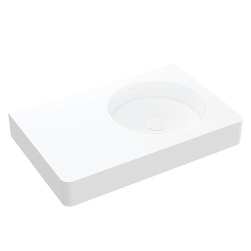Fienza Encanto 700 Solid Surface Wall Hung Basin No Tap Hole Right Hand Bowl Matte White CSB11-70R-0