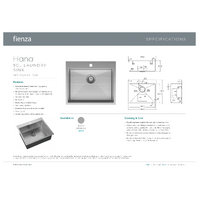Fienza Hana Single Bowl Laundry Sink 50 Litre Topmount or Undermount No Overflow 68503-OF
