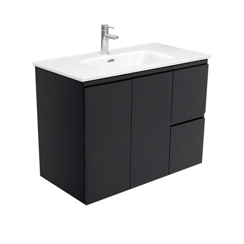 Fienza Joli Fingerpull 900 Bathroom Vanity Wall Hung Vanity Satin Black JOL90ZBR