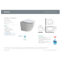 Fienza Koko Matte White Wall Hung Toilet Suite, Pan + Seat + R&T In-Wall Cistern K2376MW-RT