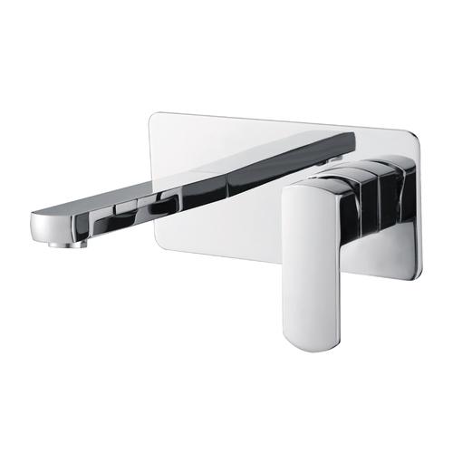 Fienza Koko Wall Basin Bath Mixer Set With Spout Outlet Square Plate Chrome 218106