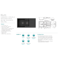 Fienza Kuro Granite 32L/14L Double Kitchen Sink Bowl with Drainer 1TH Matte Black 68610L-1
