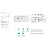 Fienza Kuro Granite 32L/22L Double Kitchen Sink Bowl with Drainer Left Bowl 1TH Matte White 68606WL-1