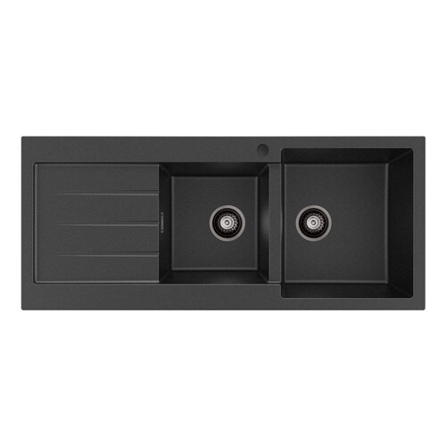 Fienza Kuro Granite 32L/22L Double Kitchen Sink Bowl with Drainer Right Bowl 1TH Matte Black 68606R-1