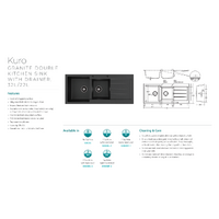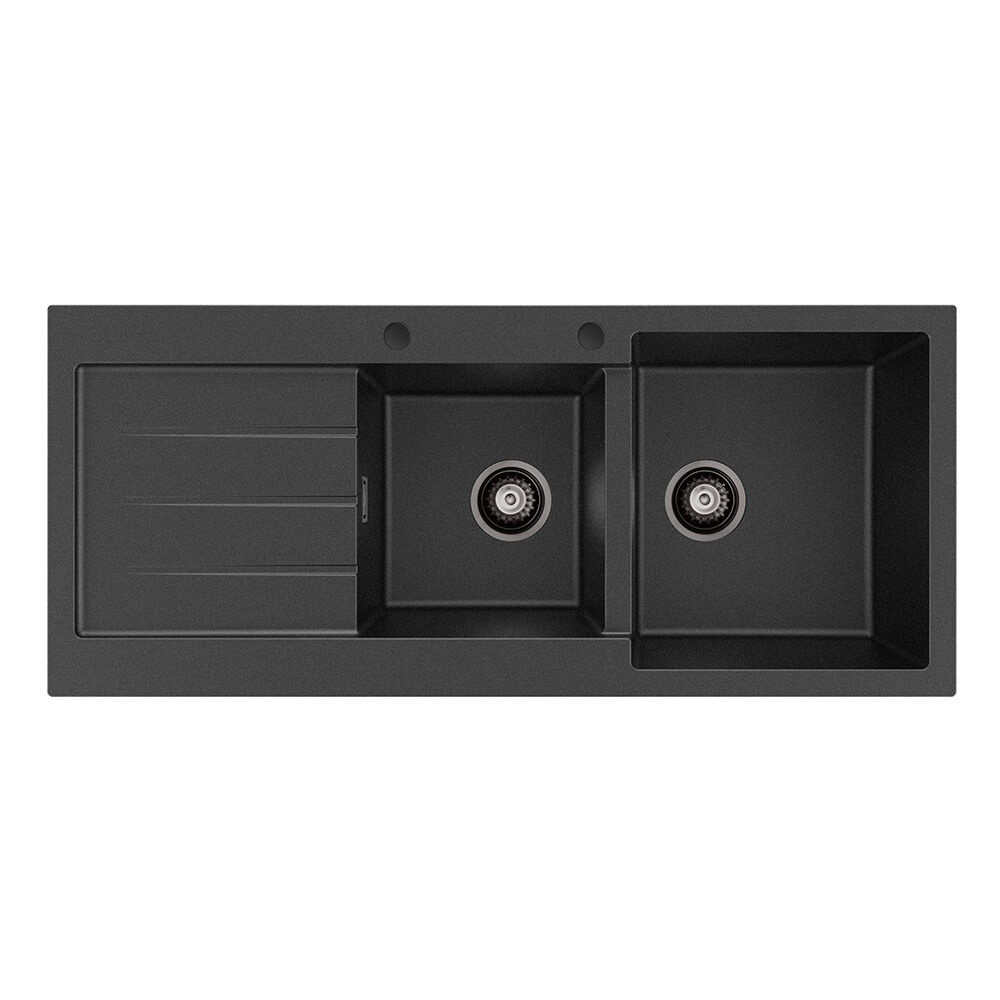Fienza Kuro Granite 32L/22L Double Kitchen Sink Bowl with Drainer Right Bowl 2TH Matte Black 68606R-2