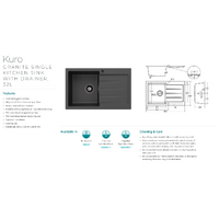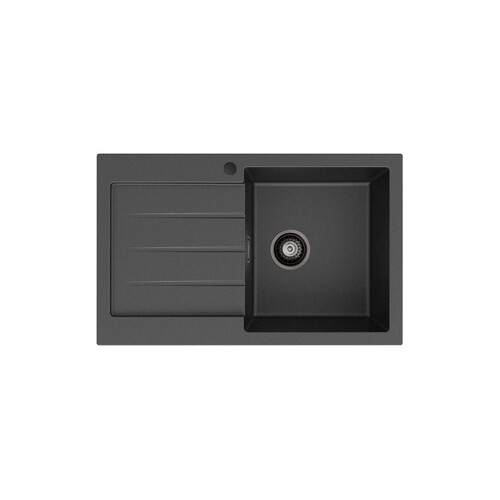 Fienza Kuro Granite 32LSingle Bowl Kitchen Sink with Drainer Right Bowl 1TH Matte Black 68604R-1