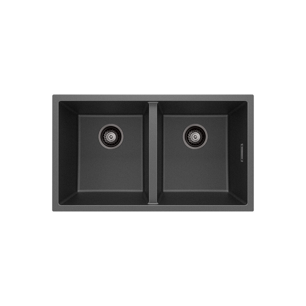 Fienza Kuro Granite 34L/34L Double Bowl Kitchen Sink Matte Black 68603